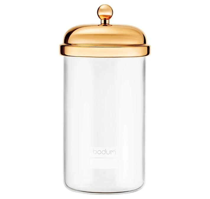 Découvrez cette boîte de conservation Chambord au couvercle de couleur plaqué or, de la marque Bodum et d’une contenance de 1 litre.