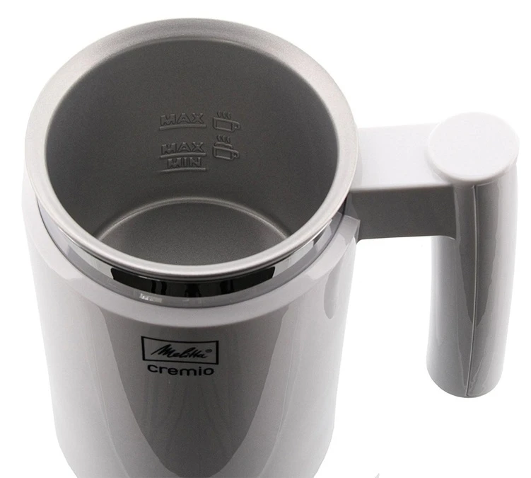 | Le mousseur Melitta Cremio II est sans fil et à une base en 360° pour permettre de faire des mousses de lait crémeuse. |